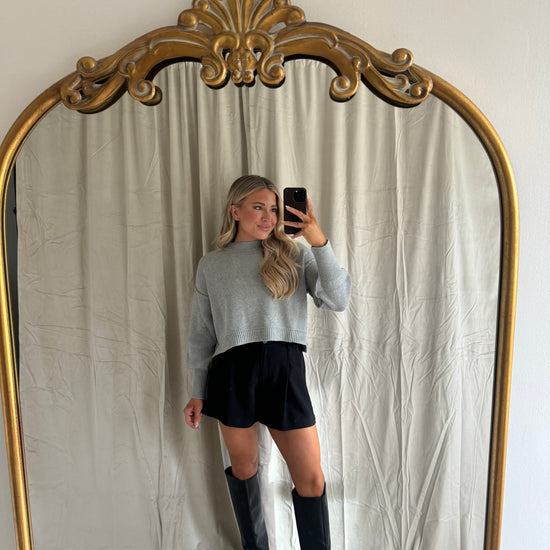Adorable pullover sweater with a boxy slouchy silhouette and slightly cropped waist, the Regina sweater is the all-around staple piece in her wardrobe that can be thrown on while on her way to the gym or a girls night out with friends.