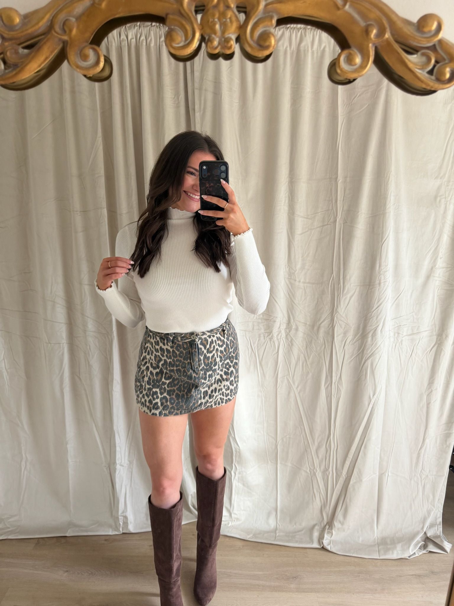 A classic sweater that is great for any occasion. Dress our Marcey mock neck sweater with lettuce hem detailing at the hem, neck and sleeves up with a skirt and boots, or pair it down with joggers, either way, you will be warm and cozy.