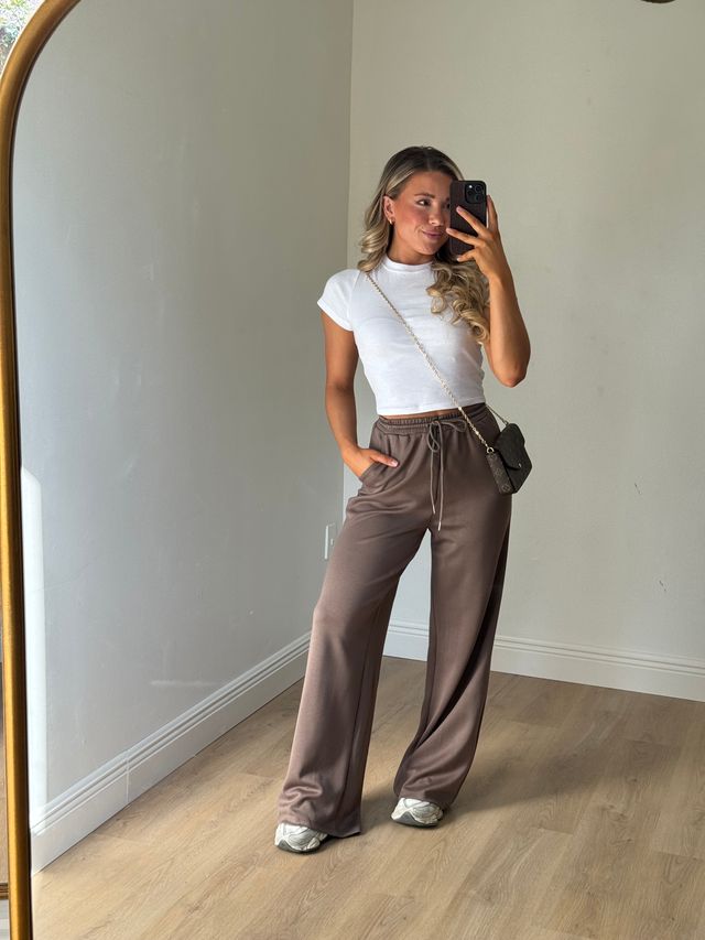 Elevate your wardrobe effortlessly with these wide-leg drawstring pants that offer an exquisite blend of style, comfort, and versatility. Crafted with a flowing silhouette, these pants ensure a relaxed yet refined look. The drawstring waistband allows for customizable fit, making them a great choice for various body types. 49% rayon 44% polyester 7% spandex