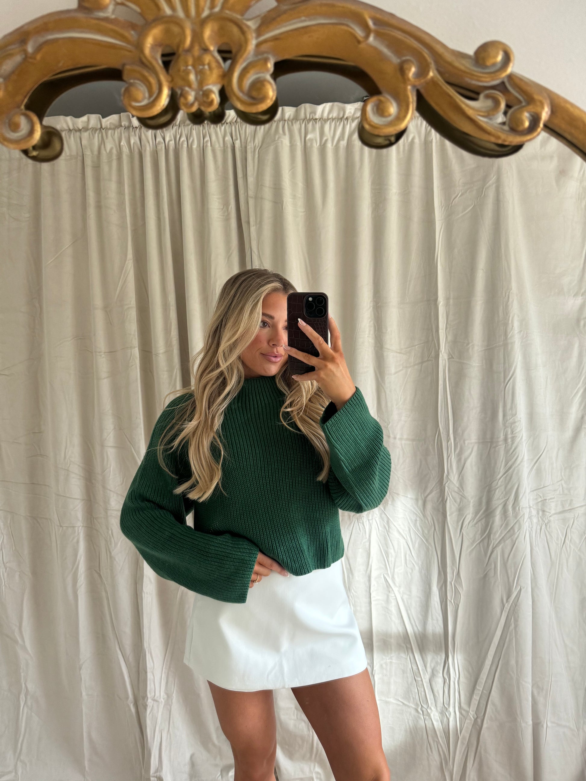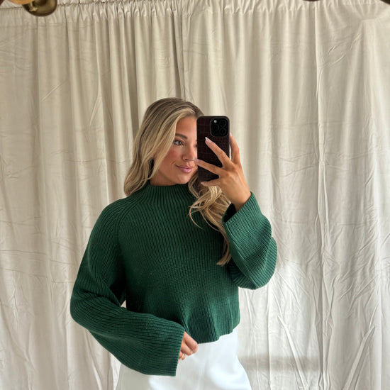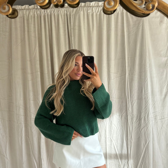 Our Gabby Sweater features a mock neck and a back high low cut out. This sweater comes in 2 colorways that are perfect for the holidays!