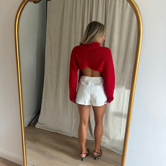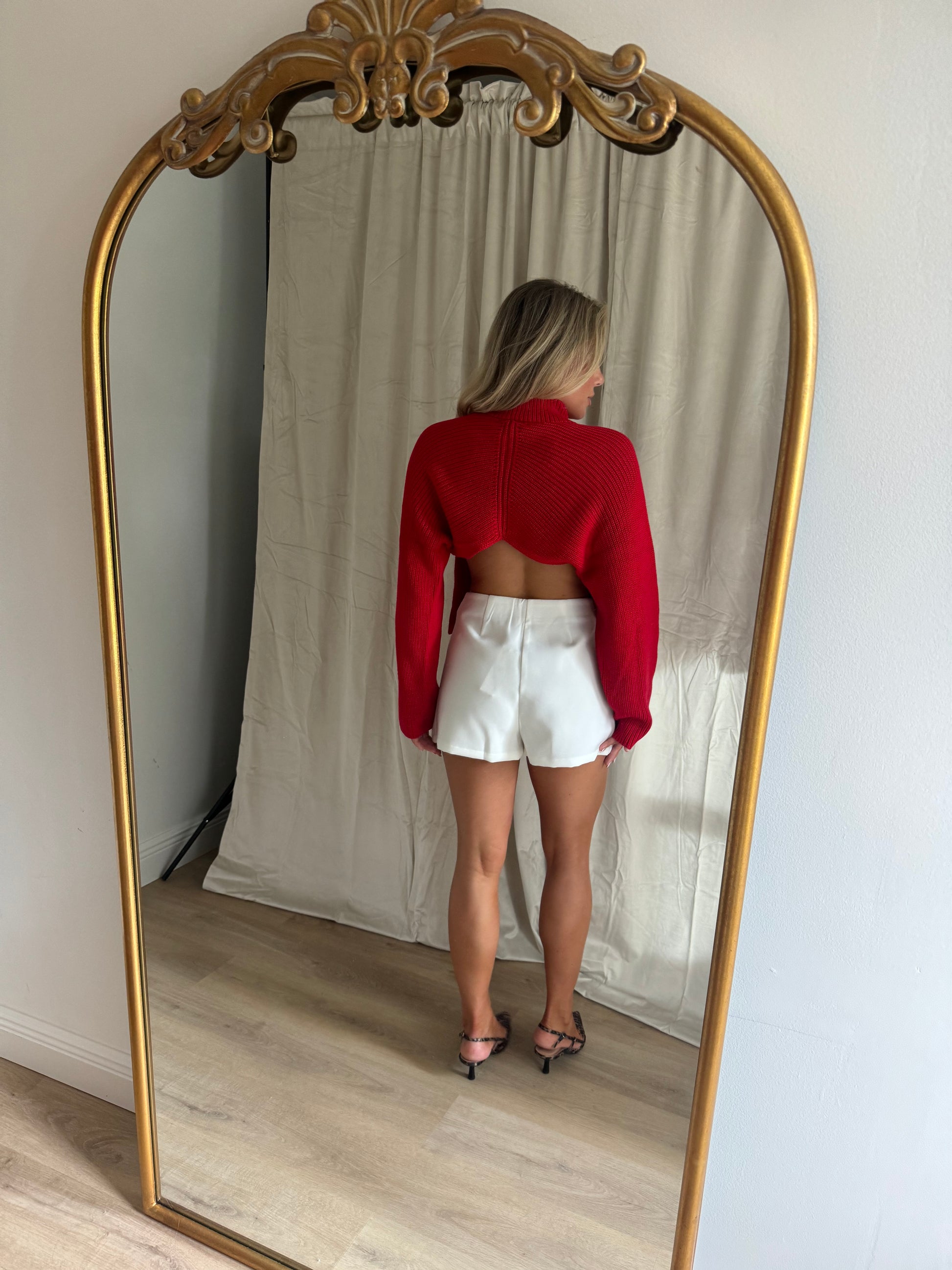 Our Gabby Sweater features a mock neck and a back high low cut out. This sweater comes in 2 colorways that are perfect for the holidays!