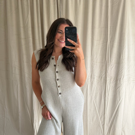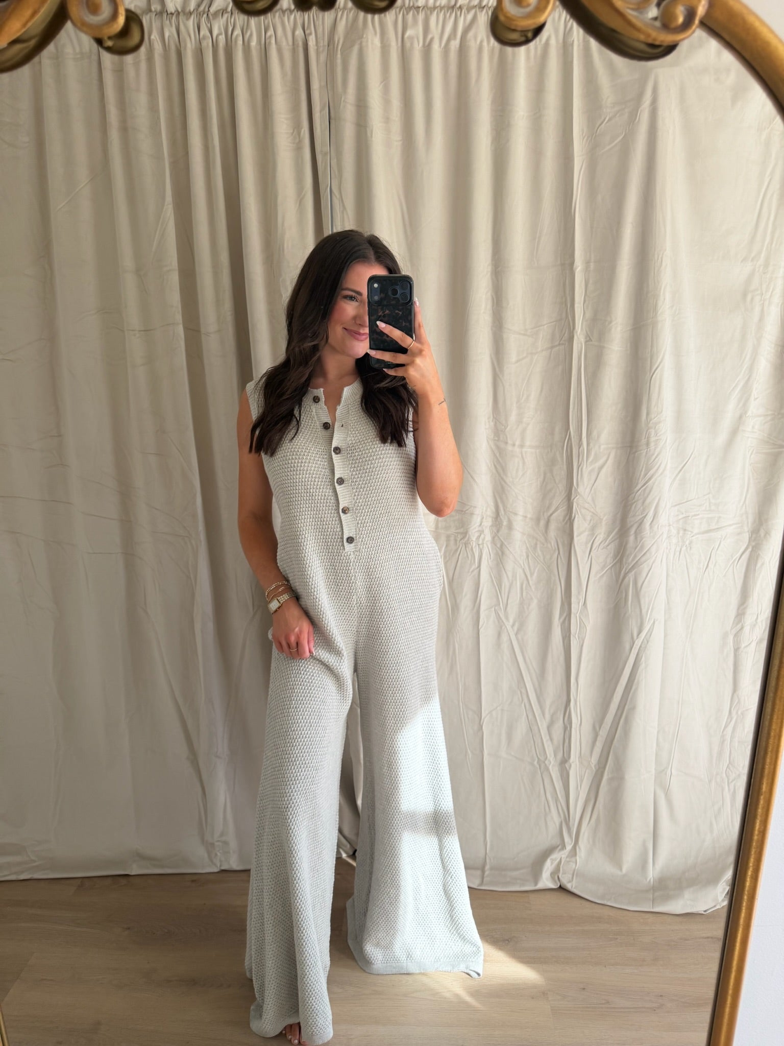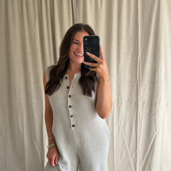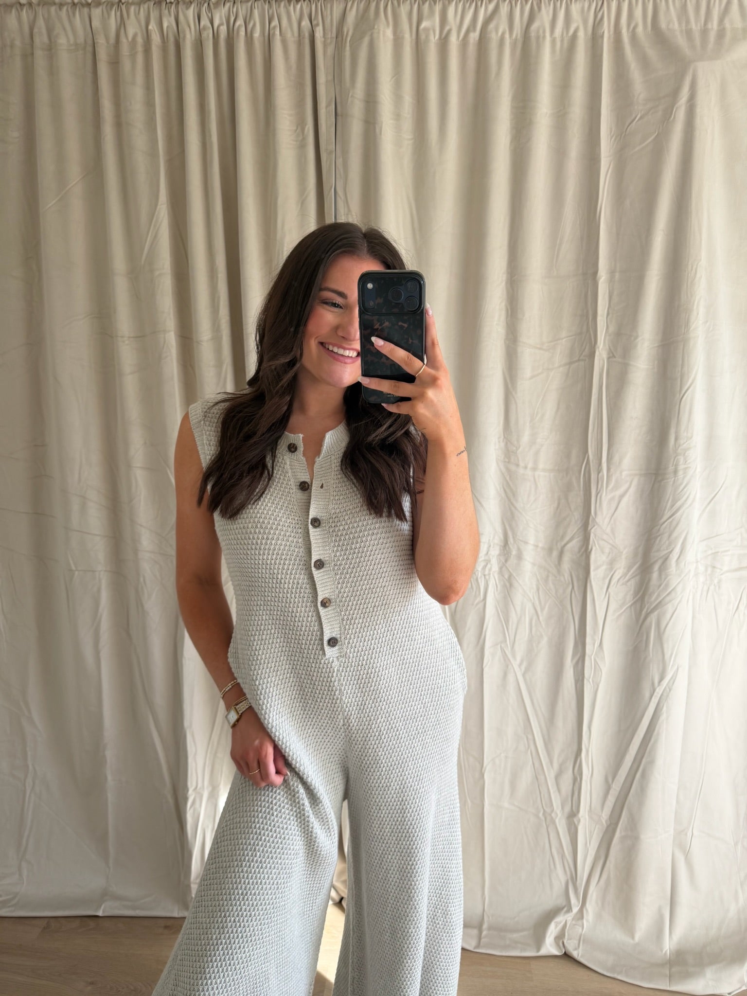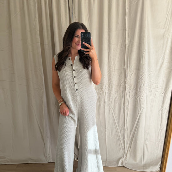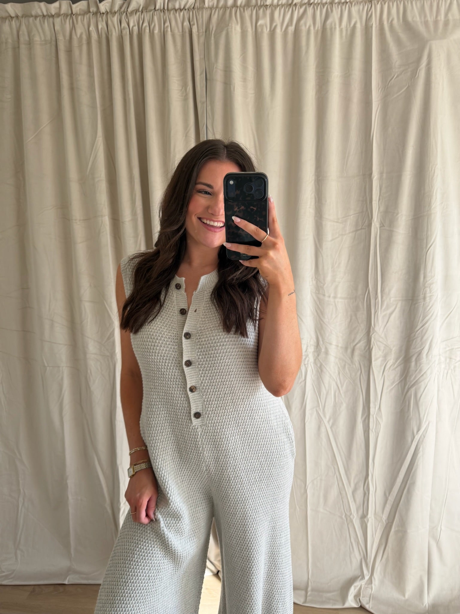 Experience effortless style and comfort with the On Cloud Nine Wide Leg Jumpsuit. Crafted from cozy sweater material, this sleeveless jumpsuit features a functional button front and a rounded neckline, making it both bump and breastfeeding friendly. Its loose fit and wide leg design offer a flattering silhouette, especially for taller women 5'7" and up. Perfect for any occasion, this versatile piece combines ease and elegance in one must-have wardrobe staple.