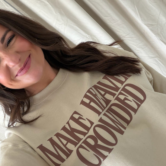 Liz is wearing a size LARGE for an oversized fit. Runs true to size.