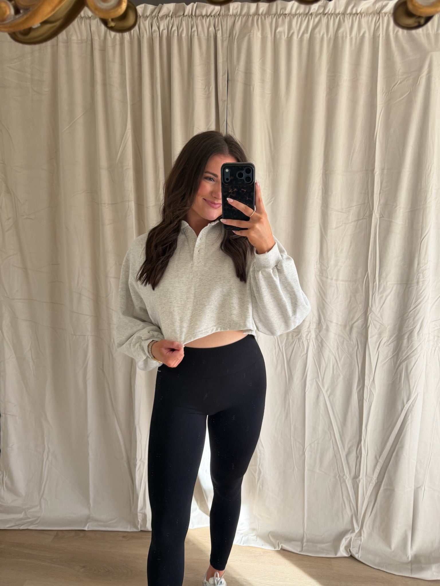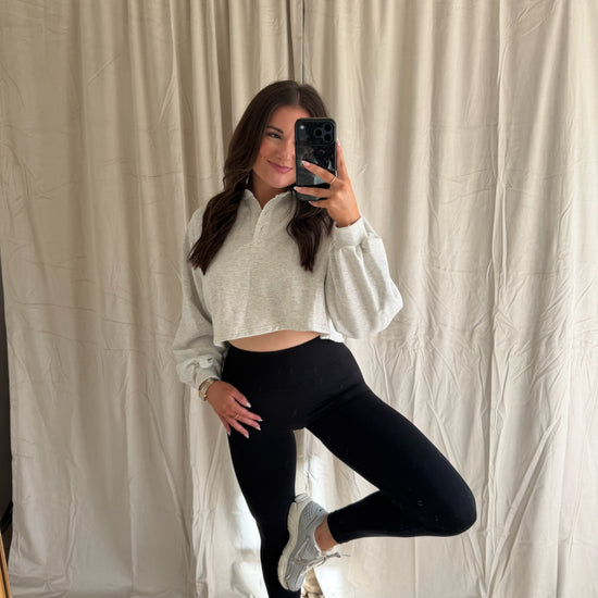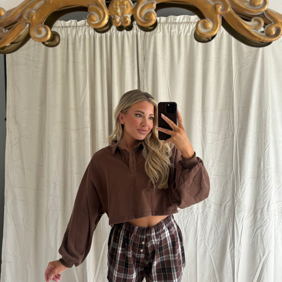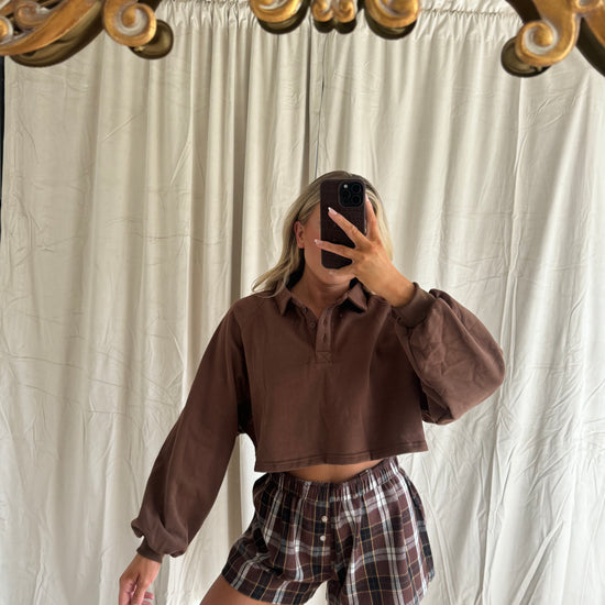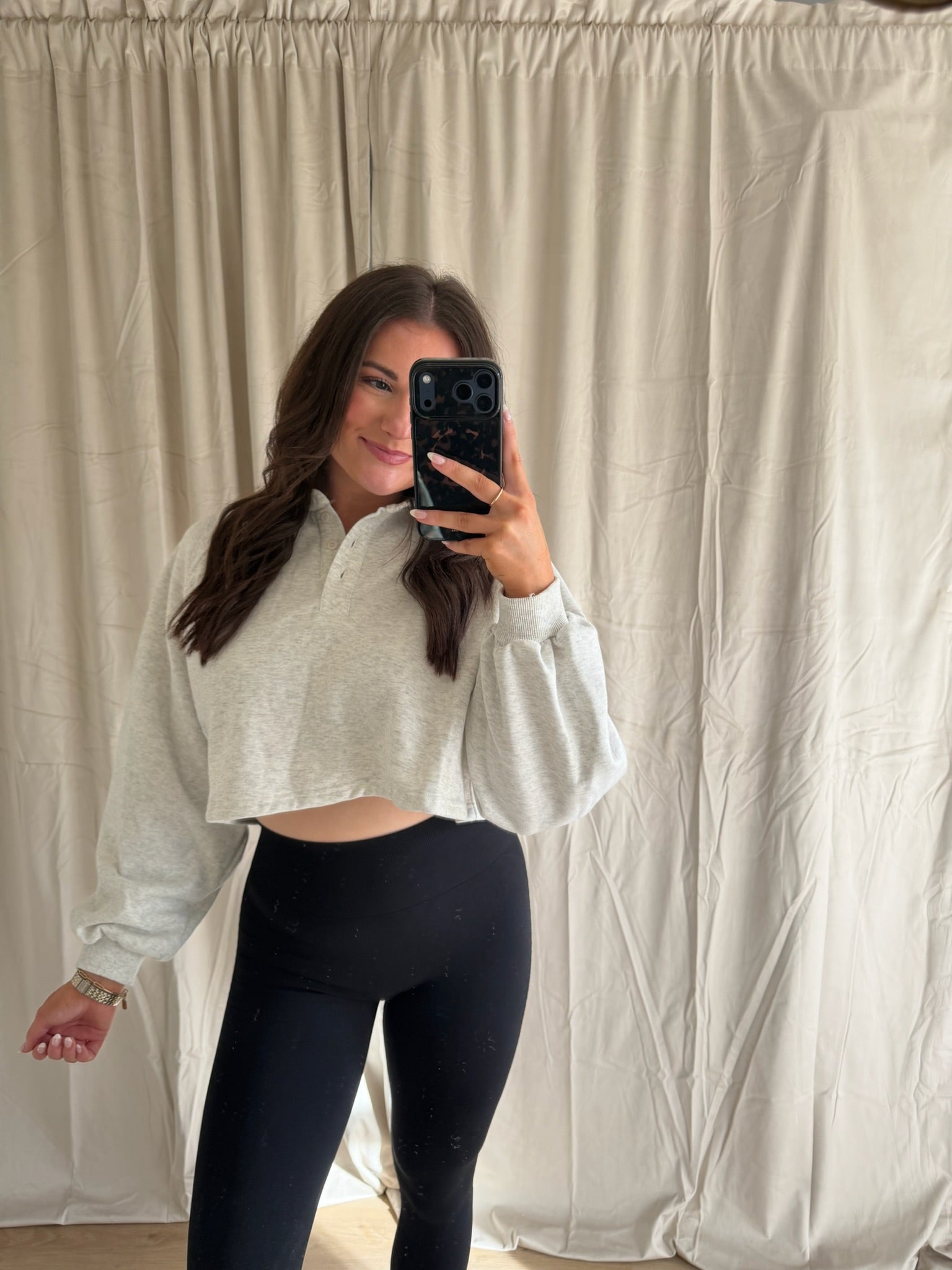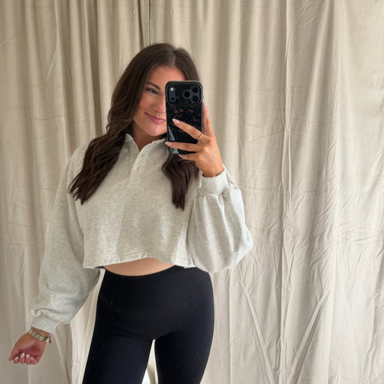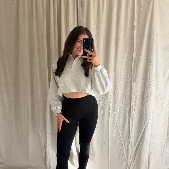 Keep it chic and easy in this bold cropped top. Designed with a relaxed oversized fit, it features a collared neckline, button-front detail, and dramatic balloon sleeves that bring effortless style to your everyday look. Pair it with high-waisted bottoms for a perfectly balanced silhouette. It offers a cropped length for easy styling Perfect for: brunch dates, casual weekends, layering with denim, or adding a pop of color to your everyday rotation.