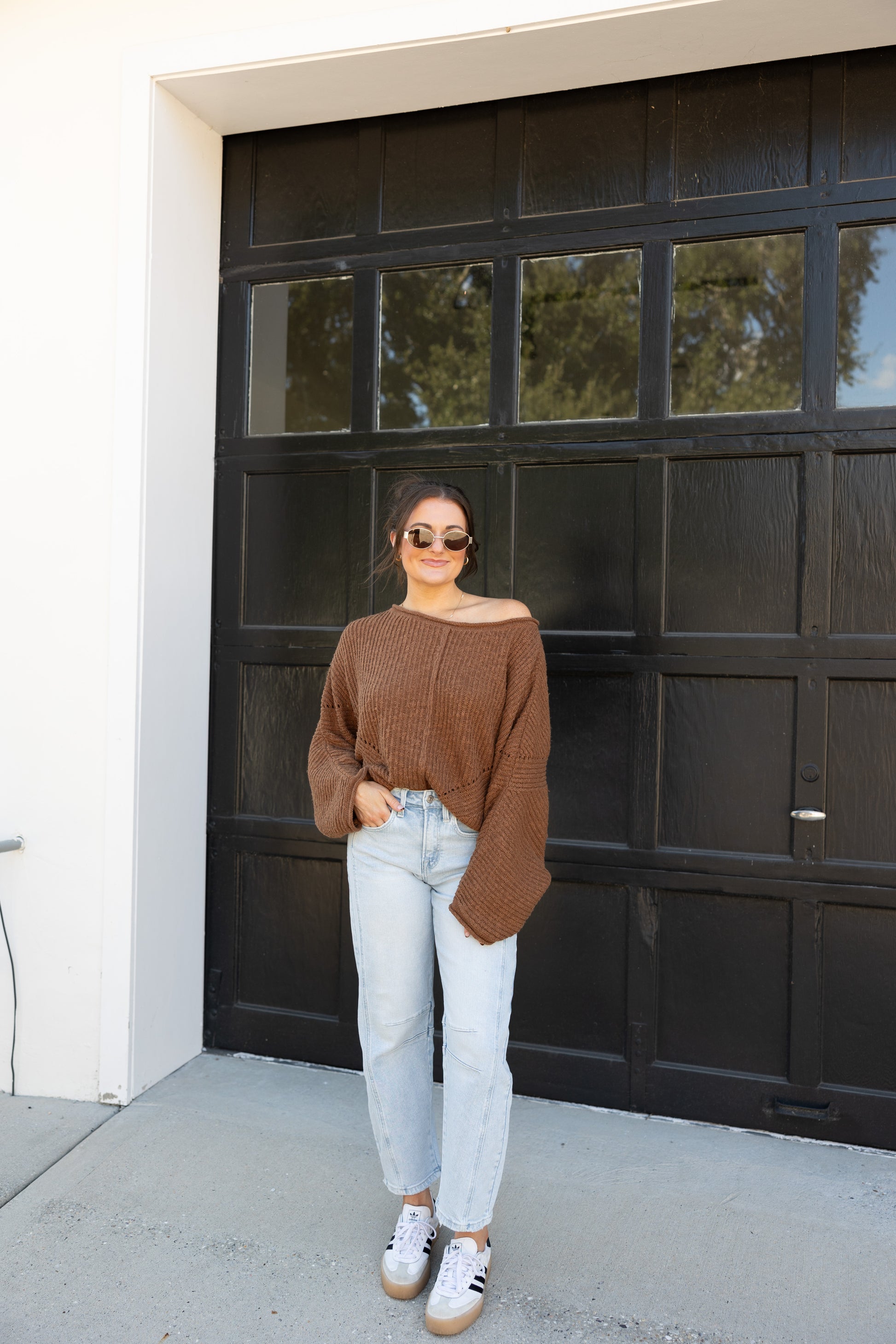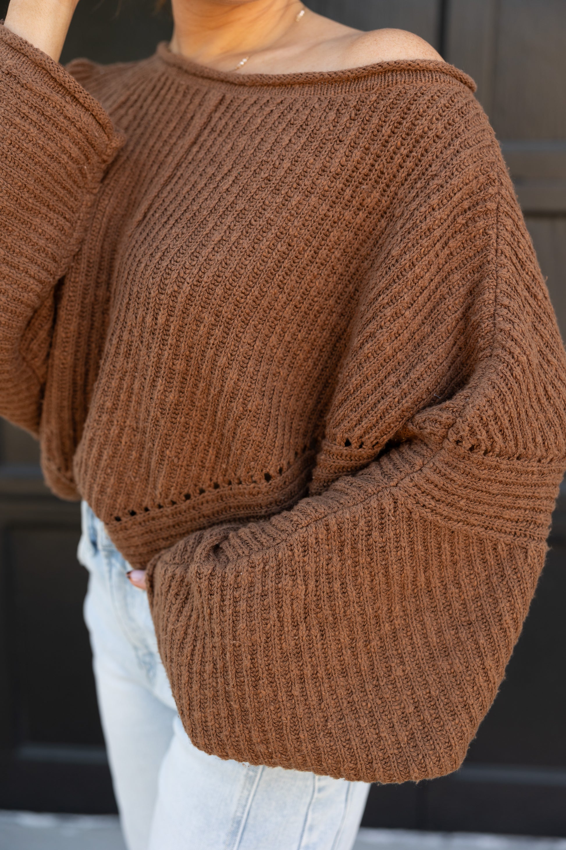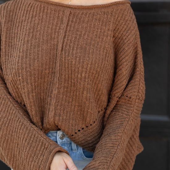 Effortlessly cozy with a touch of edge, this ribbed knit sweater features a slouchy, drop-shoulder silhouette that drapes beautifully on the body. The subtle directional ribbing adds textural interest, while the relaxed neckline and slightly oversized fit make it perfect for layering. Designed with everyday ease in mind, this versatile piece pairs just as well with casual cargos as it does with tailored bottoms. A go-to essential for laid-back days or cool evenings.