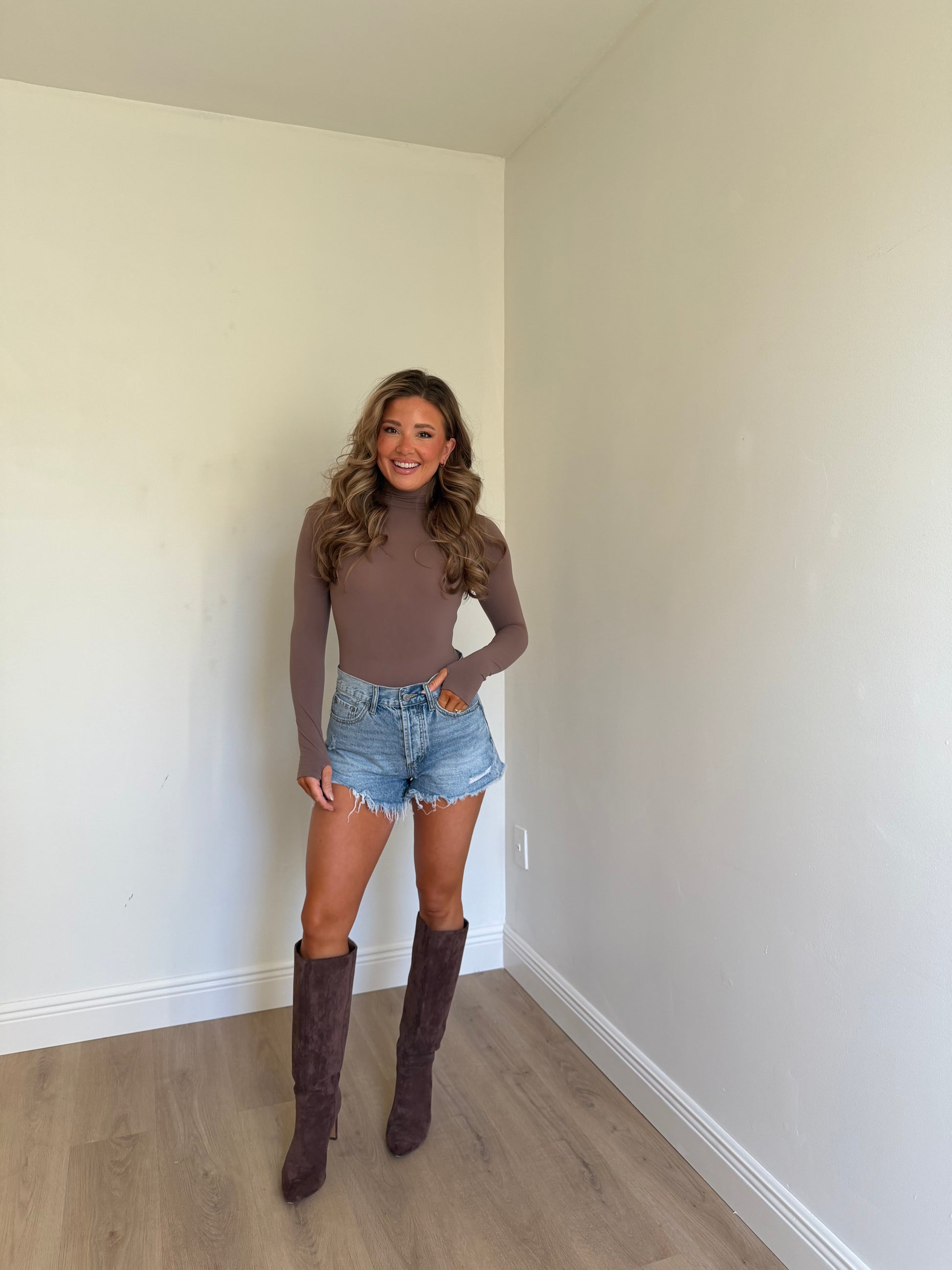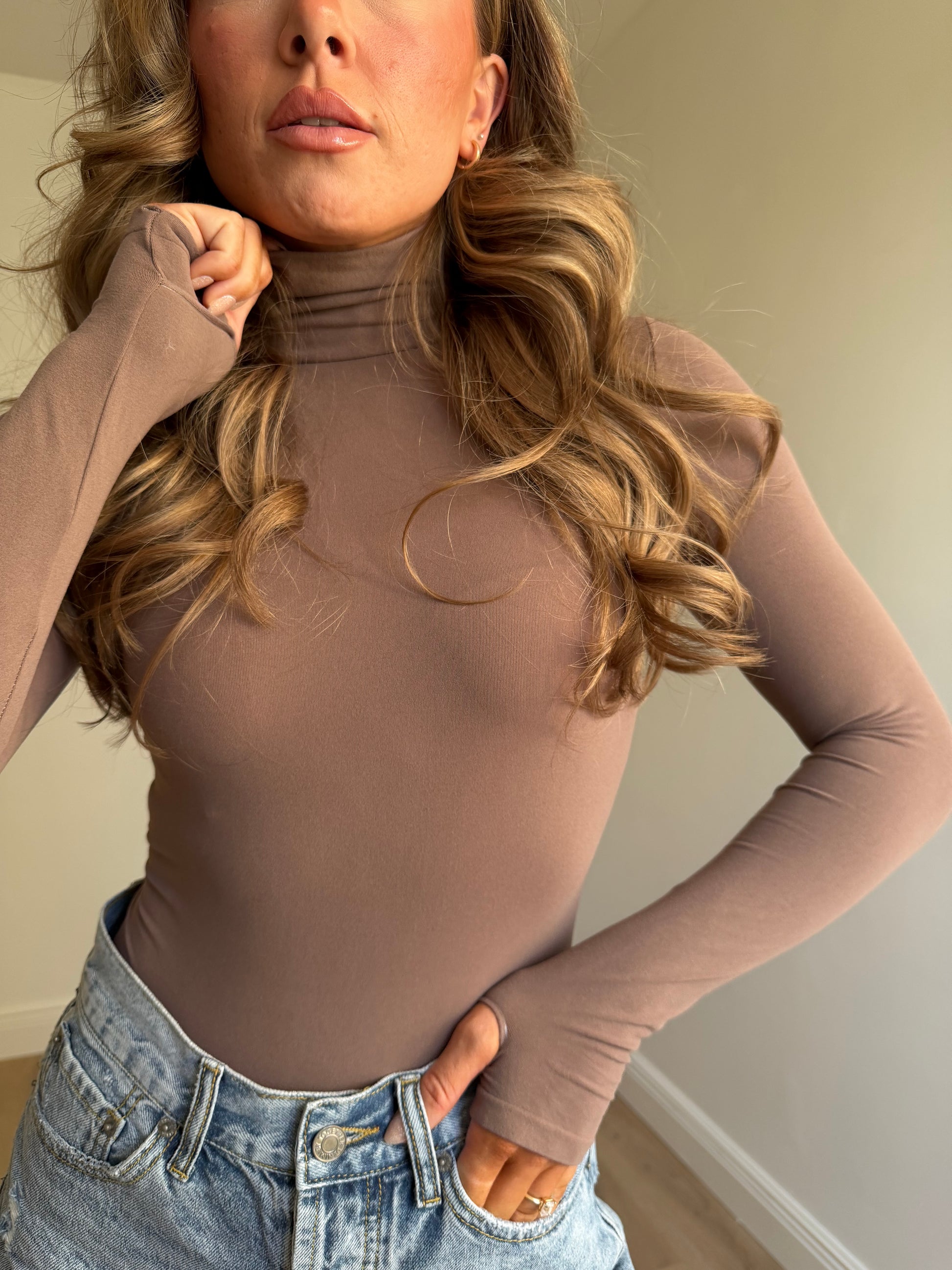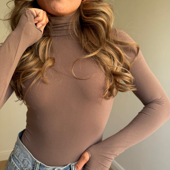 Knit Seamless Turtle Neck Long Sleeve With Thumb Hole Detailed Bodysuit Top With Snap Buttons