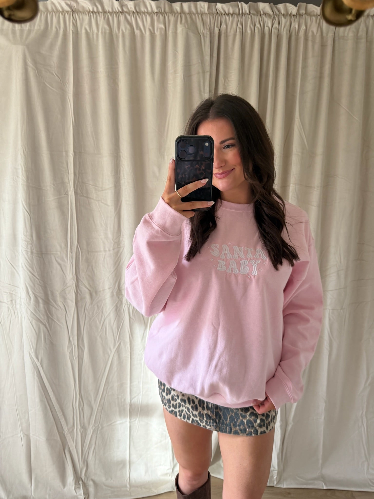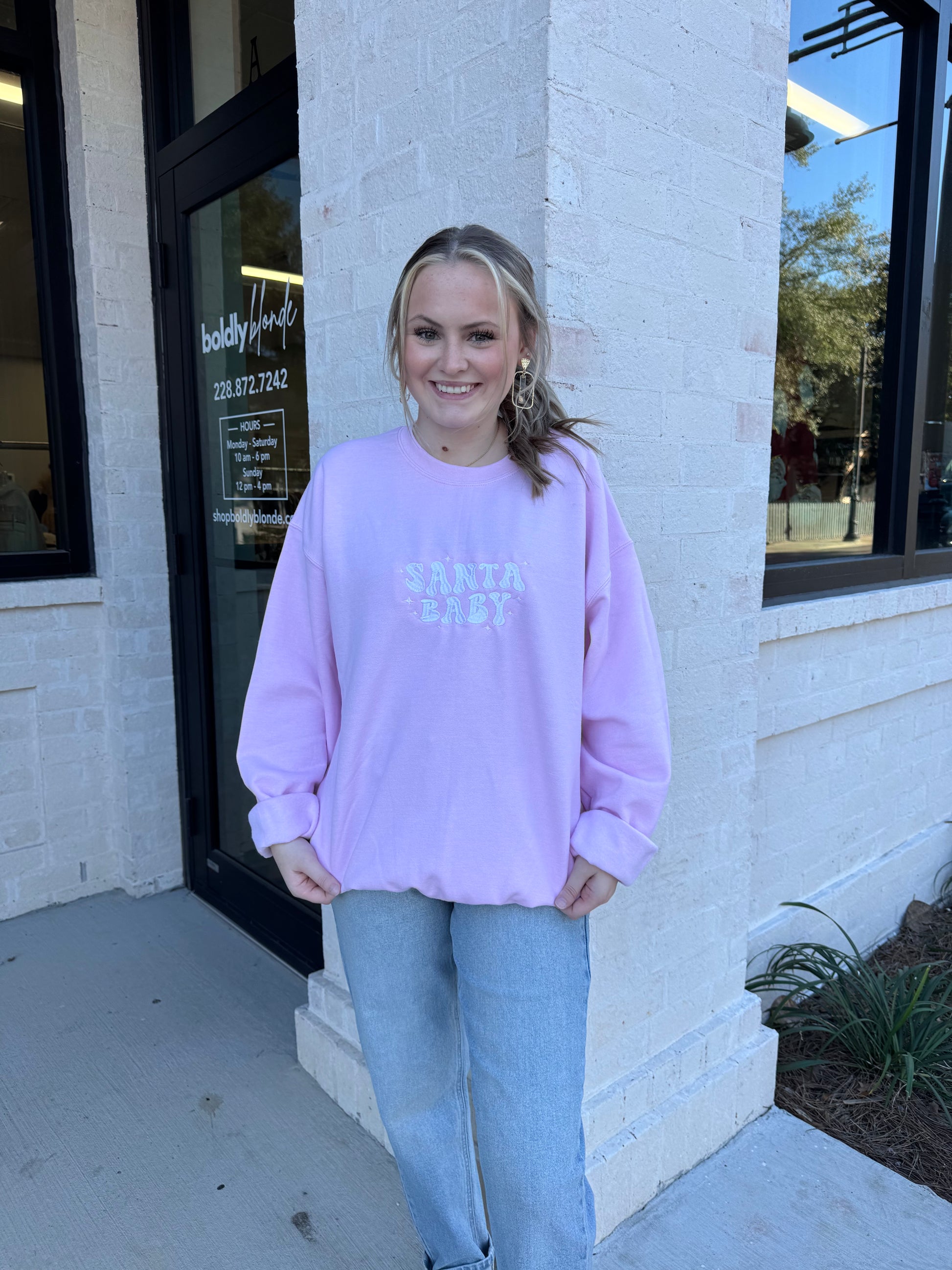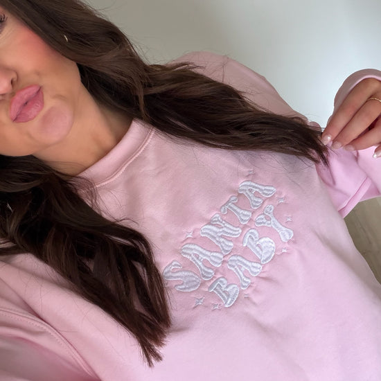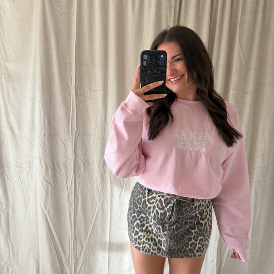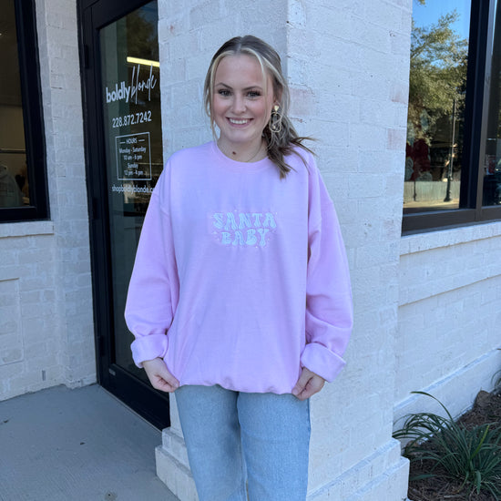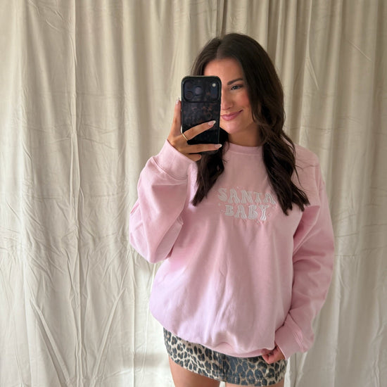 Emma (hair up) is wearing a size LARGE for an oversized, roomy fit.
