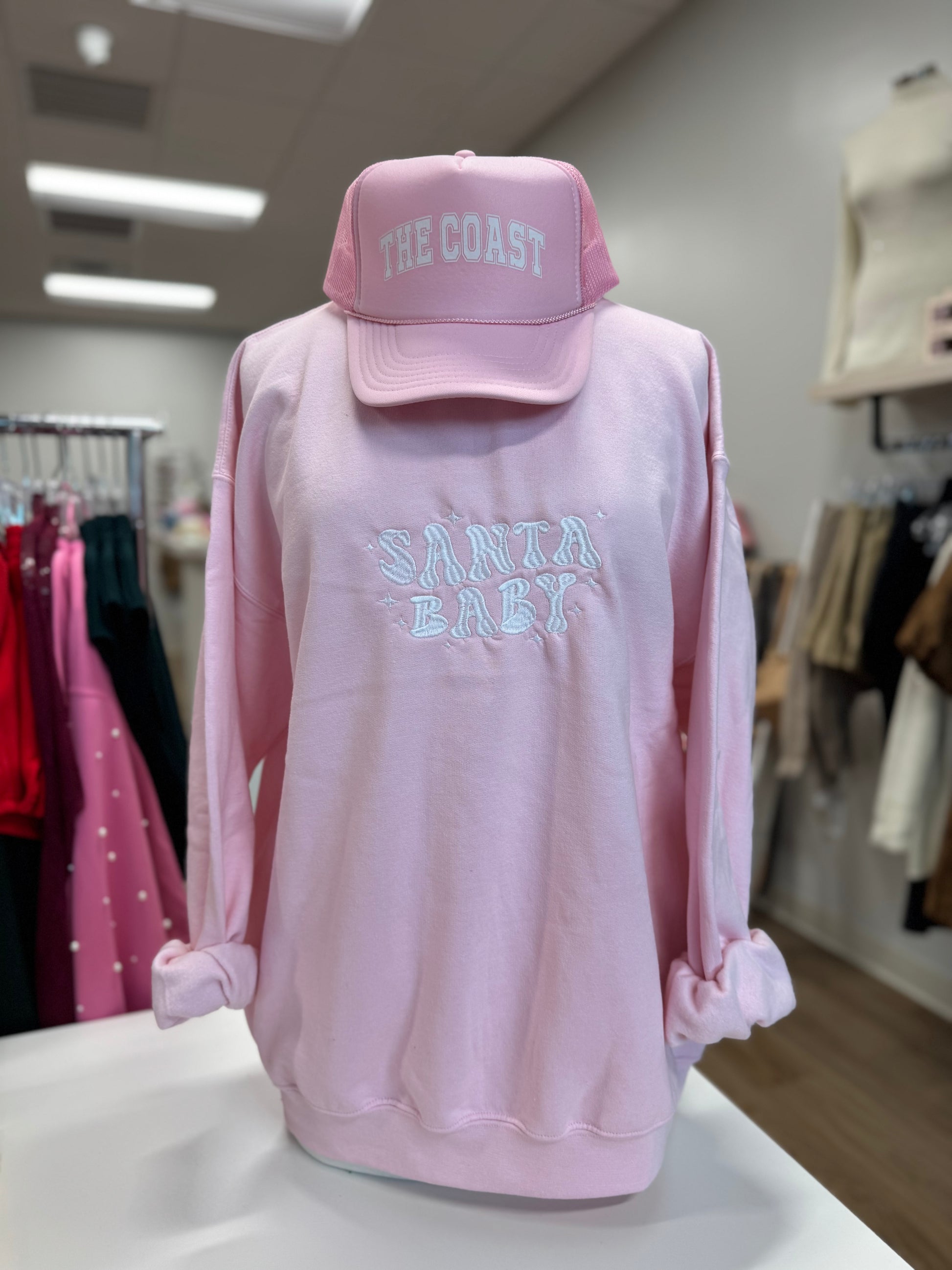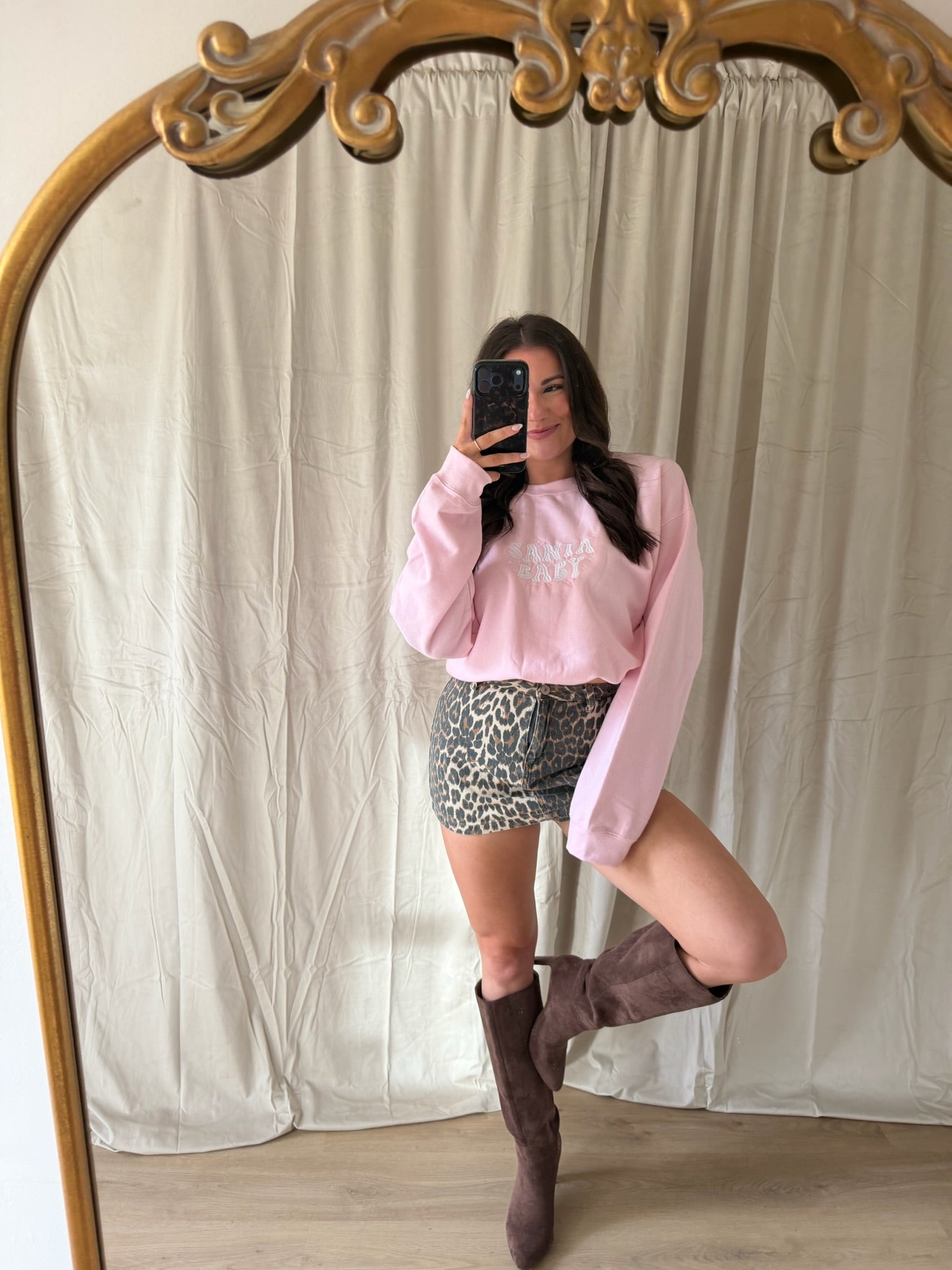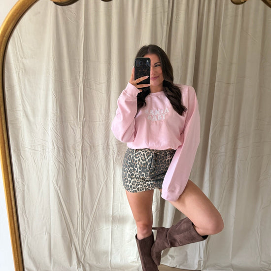 Emma (hair up) is wearing a size LARGE for an oversized, roomy fit.