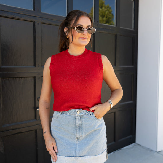 Lacey Sleeveless Crew Neck Knit Top - 3 COLORS!