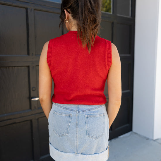 Elevate casual outings with this sleeveless structured crew neck knit. Its classic design ensures it never goes out of style. Perfect for layering, it pairs beautifully with denim for a chic daytime look. Ideal for weekend getaways. Style it with bold accessories for added flair. 64% Acrylic 30% Polyester 6% Spandex