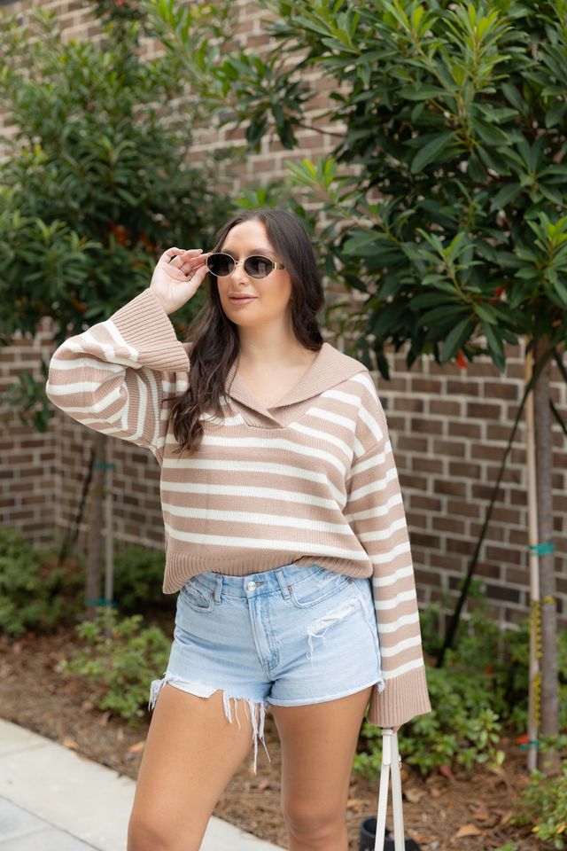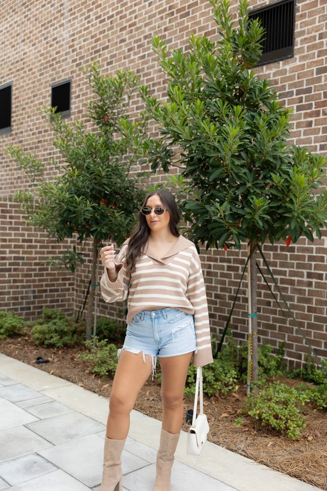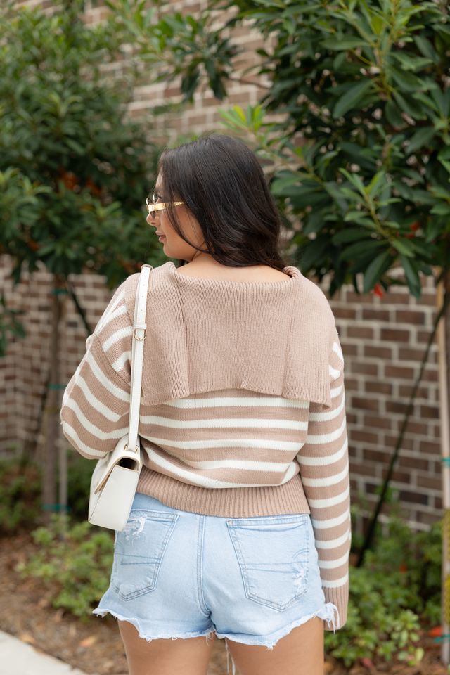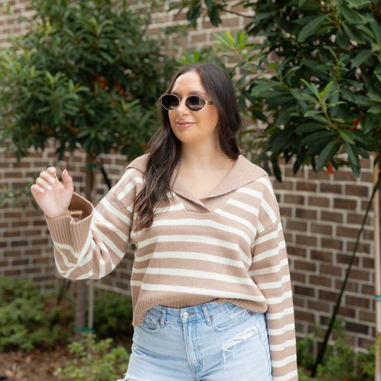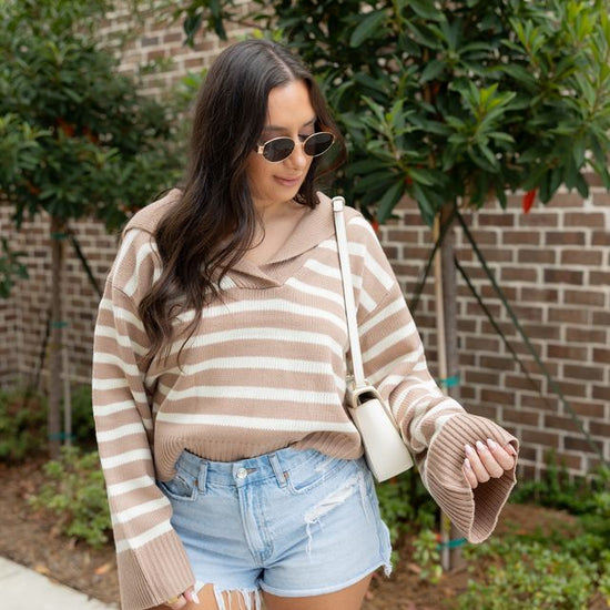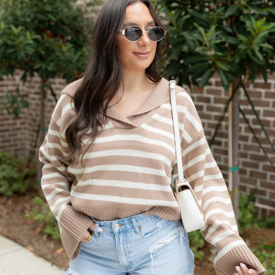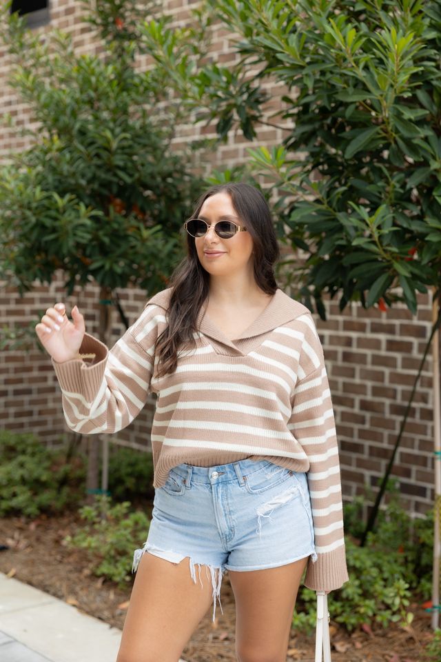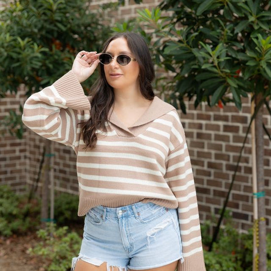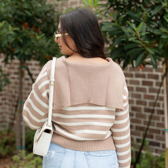 Embrace a stylish silhouette with this charming sweater, featuring bold horizontal stripes. The sailor collar adds a distinctive touch, making this piece not only comfortable but also remarkably versatile. Perfect for layering, it enhances any casual outfit or can be dressed up for a smart look. Ideal for brisk days, team it with your favorite jeans or a sleek skirt. 100% Acrylic