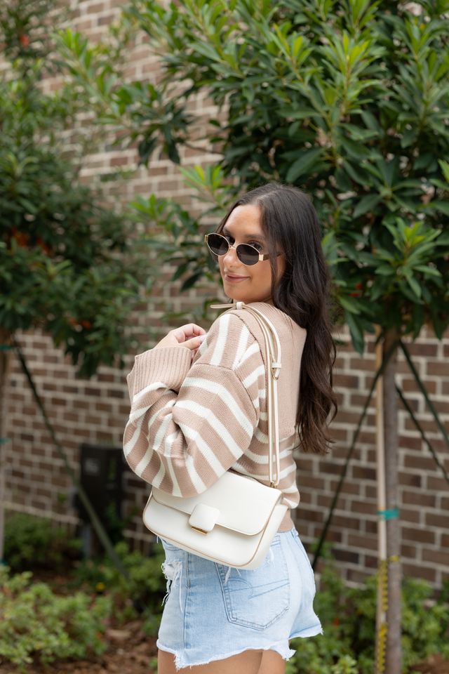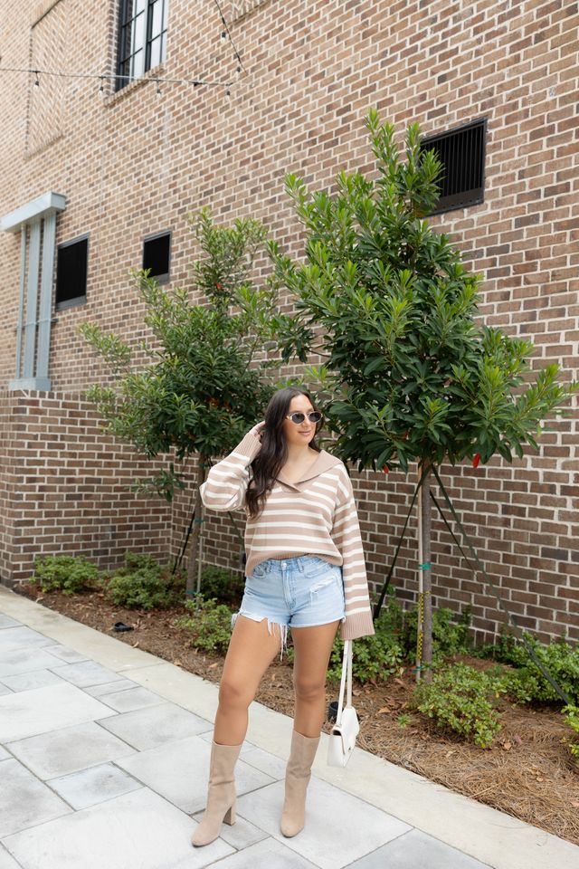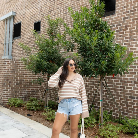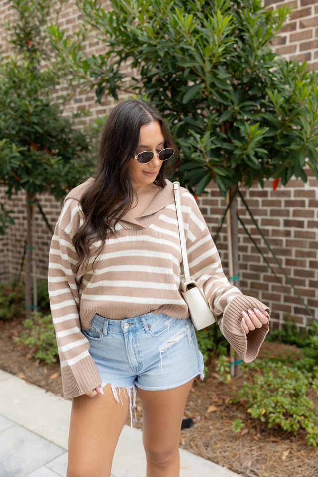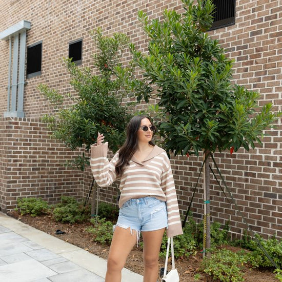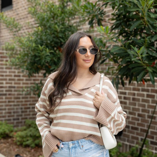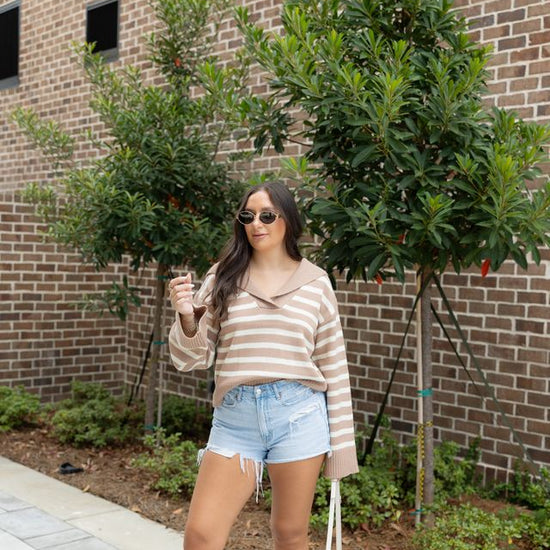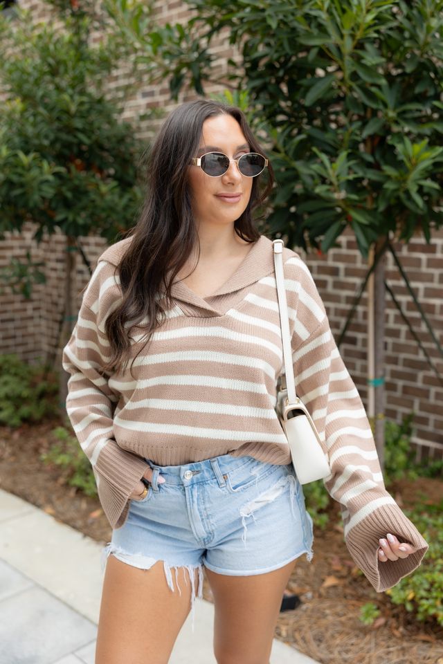 Embrace a stylish silhouette with this charming sweater, featuring bold horizontal stripes. The sailor collar adds a distinctive touch, making this piece not only comfortable but also remarkably versatile. Perfect for layering, it enhances any casual outfit or can be dressed up for a smart look. Ideal for brisk days, team it with your favorite jeans or a sleek skirt. 100% Acrylic