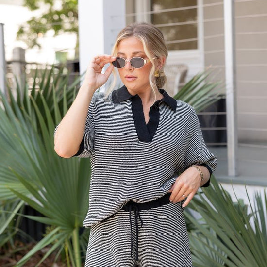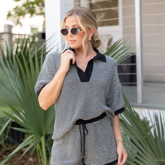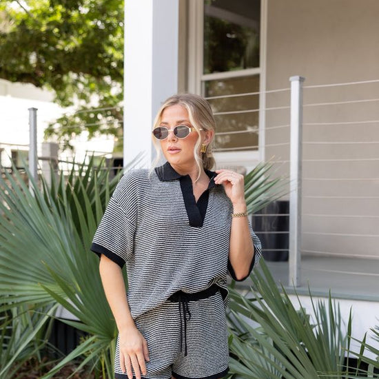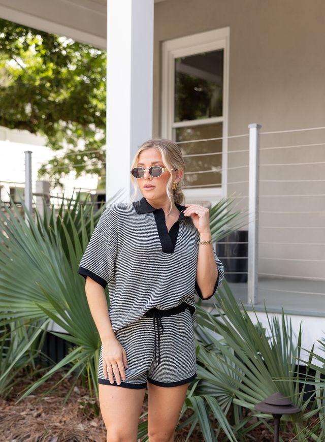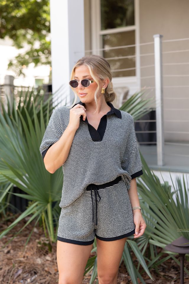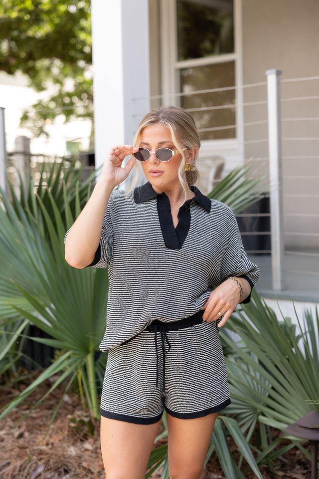 These Golden Hour Striped Sweater Shorts combine comfort and style effortlessly. Featuring a drawstring elastic waist and contrasting solid-color trim at the waist and hem, they offer a flattering, loose fit with a wide leg and thigh-length cut. Perfect for lounging or casual outings, pair them with the matching top to create an effortlessly chic and coordinated look.