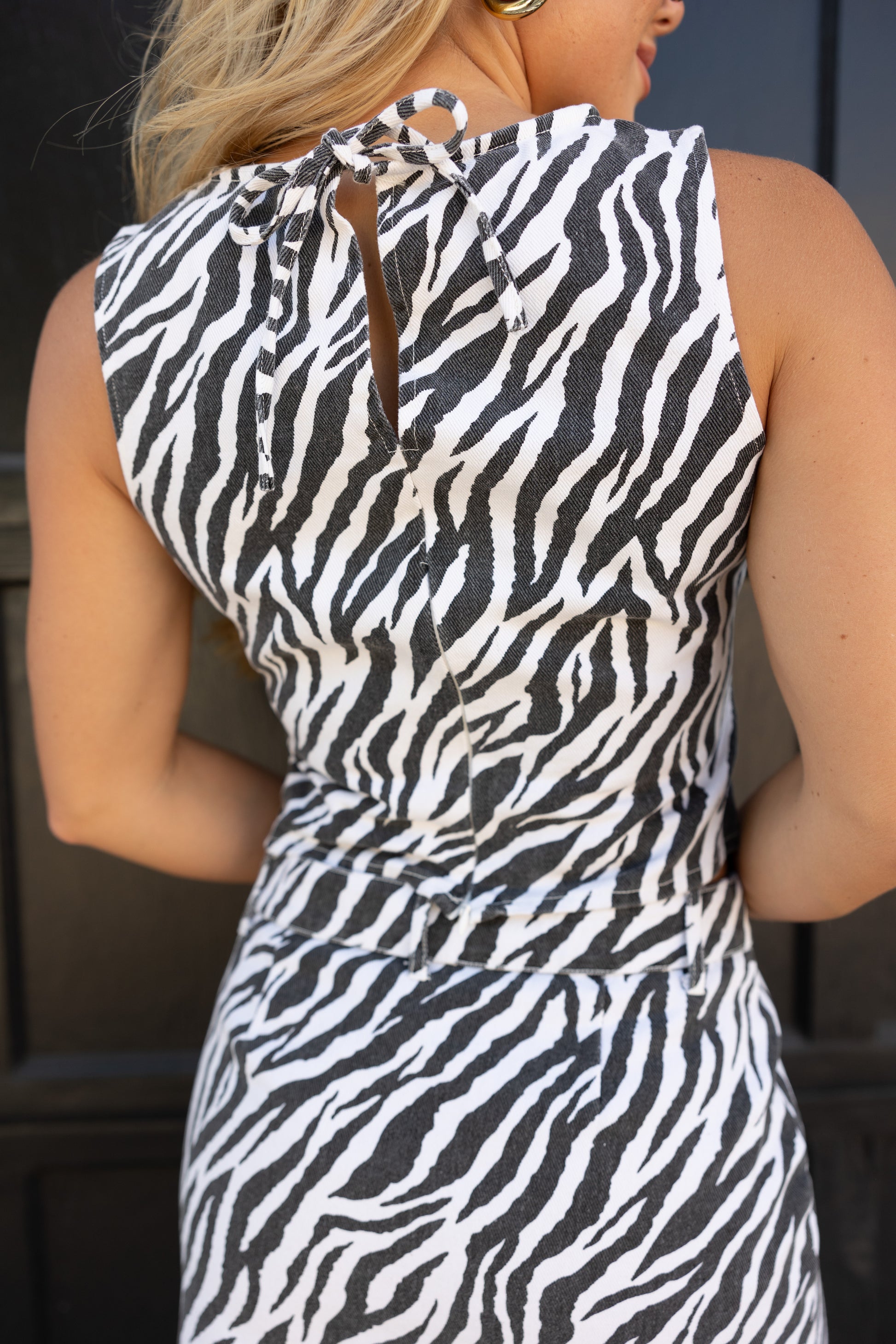 Step into the spotlight with this playful zebra print Wesley Mini Skirt Set, a must-have for anyone embracing the Y2K comeback. Featuring a trendy tie-back detail and a hidden back zipper for a sleek fit, this matching set includes an adjustable, removable belt to customize your look. Perfect as a standout piece, it adds bold flair to your closet and keeps your style effortlessly fresh and fun.